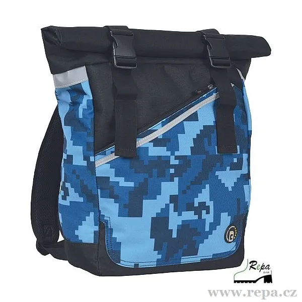 Prostorný jednokomorový batoh v kamuflážovém potisku.