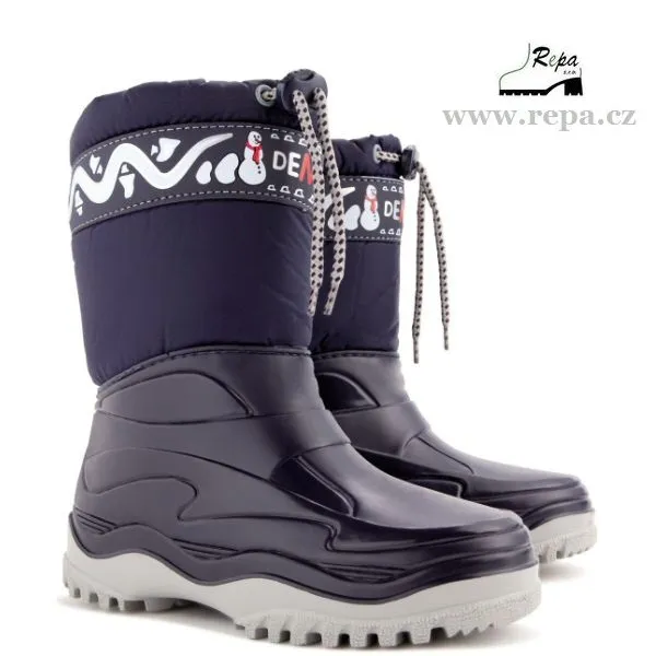 Dětská zimní obuv FROST je vhodná do zimního počasí. Barva sněhulí je tmavě modrá. Obuv je velice teplá a lehká. Nepromokavá spodní část je vyrobena z PVC a vrchní díl z odolné textilie. Zateplení je ze syntetického materiálu. Možnost zatažení svršku tkaničkou proti padání shěnu do obuvi. Mají hrubší protiskluzovou podrážku zajišťující bezpečnost chůze. Na obuvi je bezpečnostní reflexní prvek pro dobrou viditelnost dítěte ve tmě. Vyrobeno v EU.