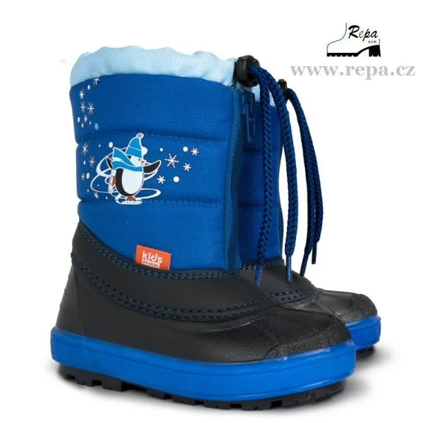 Dětská zimní obuv KENNY zateplená pravou ovčí vlnou je vhodná do sněhu a mrazu. Barva sněhulí je zelená. Zimní obuv je velice teplá a lehká. Nepromokavá spodní část je vyrobena z termokaučuku a vrchní díl z odolné textilie. Pro pohodlné a snadné obouvání obuvi je na přední straně umístěn zip. Možnost zatažení svršku proti padání sněhu na tkaničku. Mají hrubší protiskluzovou podrážku zajišťující bezpečnost chůze.