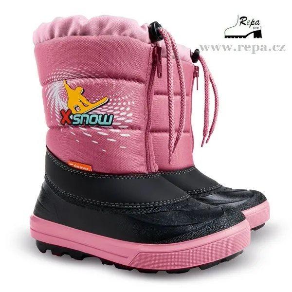 Dětská zimní obuv KENNY zateplená pravou ovčí vlnou je vhodná do sněhu a mrazu. Barva sněhulí je růžová. Zimní obuv je velice teplá a lehká. Nepromokavá spodní část je vyrobena z termokaučuku a vrchní díl z odolné textilie. Pro pohodlné a snadné obouvání obuvi je na přední straně umístěn zip. Možnost zatažení svršku proti padání sněhu na tkaničku. Mají hrubší protiskluzovou podrážku zajišťující bezpečnost chůze.