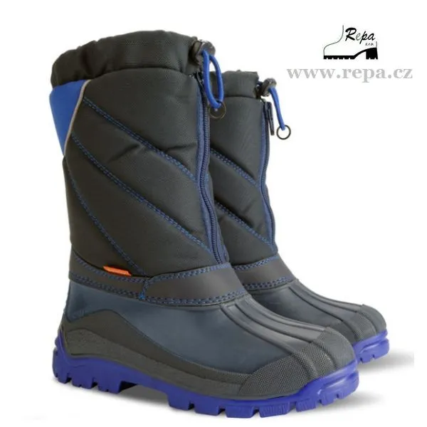 Dětské zimní sněhule NIKO jsou vhodné do sněhu a mrazu. Barva sněhulí je modrá. Sněhule jsou odolné velmi nízkým teplotám. Zateplení z pravé ovčí vlny zaručuje vysoký tepelný komfort. Nepromokavá spodní část je vyrobena z termokaučuku a vrchní díl z odolné textilie. Možnost zatažení svršku proti padání sněhu na tkaničku. Mají hrubší protiskluzovou podrážku zajišťující bezpečnost chůze. Na obuvi je bezpečnostní reflexní prvek pro dobrou viditelnost ve tmě. Vyrobeno v EU.