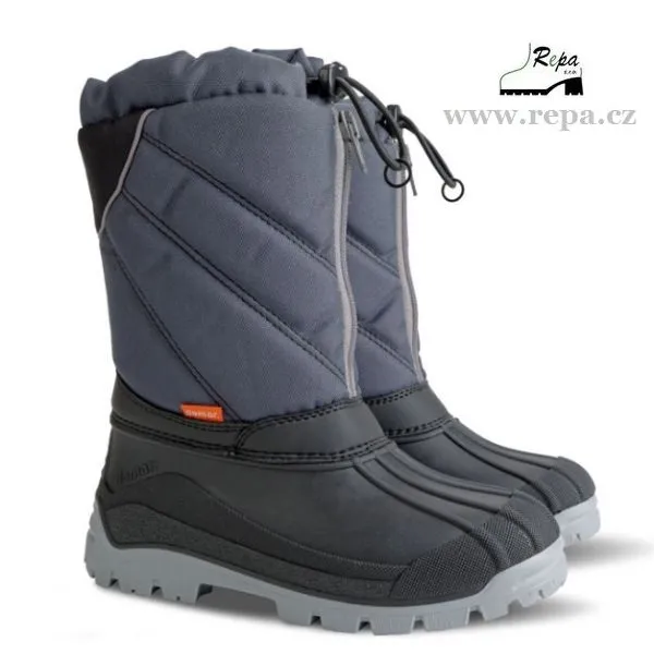 Dětské zimní sněhule NIKO jsou vhodné do sněhu a mrazu. Barva sněhulí je šedá. Sněhule jsou odolné velmi nízkým teplotám. Zateplení z pravé ovčí vlny zaručuje vysoký tepelný komfort. Nepromokavá spodní část je vyrobena z termokaučuku, vrchní díl z odolné textilie. Možnost zatažení svršku proti padání sněhu na tkaničku. Mají hrubší protiskluzovou podrážku zajišťující bezpečnost chůze. Na obuvi je bezpečnostní reflexní prvek pro dobrou viditelnost ve tmě. Vyrobeno v EU.