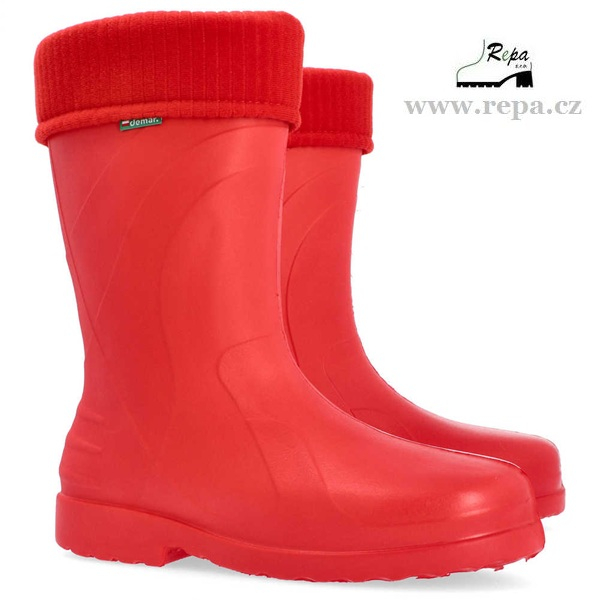 Dámské zateplené holínky demar LUNA jsou ideální pro deštivé jarní a podzimní počasí. Barva bot je červená. Holínky jsou vhodné pro práci na zahradě a procházky za deštivého počasí v mokré trávě. Holínky jsou velice pohodlné a extra lehké. Materiál kopolymer EVA, který funguje jako dobrý izolant. Boty mají certifikát - označení CE. www.demar.cz