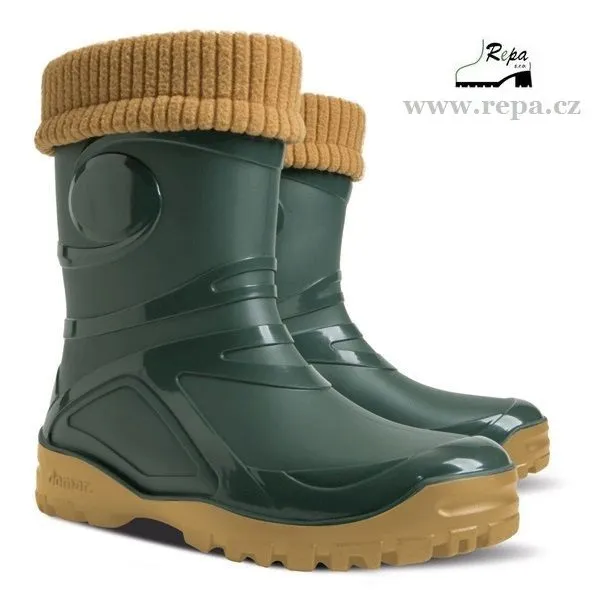 Dámské zateplené holínky YOUNG FUR 2 jsou ideální pro deštivé jarní a podzimní počasí. Barva gumáků zelená. Mají hrubší protiskluzovou podrážku zajišťující bezpečnost chůze. Holínky jsou velice pohodlné a lehké. Materiál je vysoce kvalitní a odolné PVC podšité příjemnou textilií. Boty mají certifikát pracovní obuvi - označení CE.