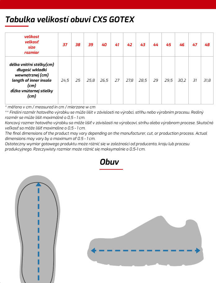 • Velikostní tabulka : ZDE