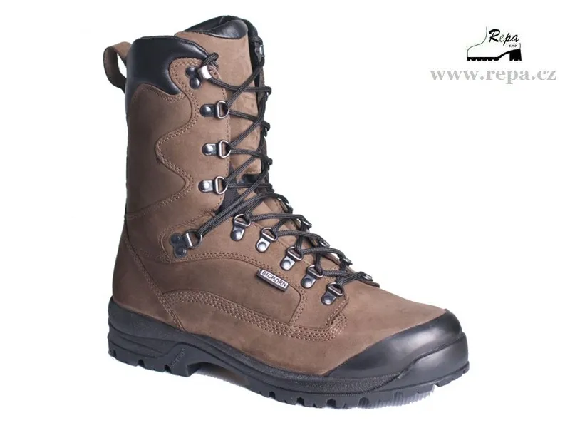 Pánská treková obuv Bighorn NEBRASKA je vhodná k celoročnímu užívání do náročných podmínek. Barva obuvi je hnědá. Doporučené používání pro horskou turistiku, outdoor, lovectví a myslivost. Svršek je vyroben ze silné voděodolné nubukové usně. Podšívka je ze speciální odolné textilie v kombinaci s izolační vrstvou THINSULATE a voděodolnou membránou BIG-TEX, která umožňuje prodyšnost obuvi z vnitřní strany ven a zamezuje pronikání vlhkosti do obuvi. Díky této membráně lze obuv nosit v mokrém prostředí. Pohodlná vložka CAMBRELLE z prodyšného materiálu. Podrážka VIBRAM z kvalitní pryže je pružná a velice přilnavá. Obuv je doplněna okopem na špičce. Boty mají systém rychlého šněrování s jedním háčkem na vršku. Vyrobeno v EU.