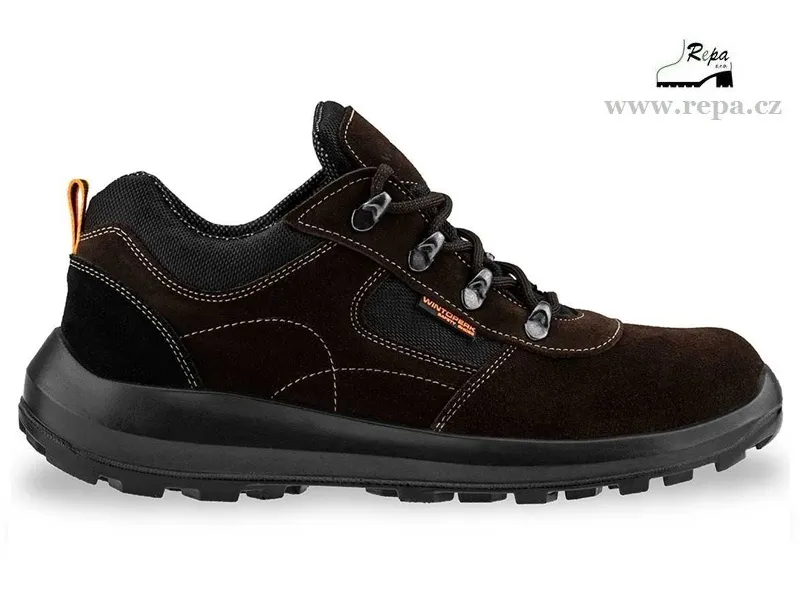 Pracovní boty s šněrováním z samerové kůže hnědé barvy. Běžné pracovní boty vhodné pro pracovní prostředí, kde není potřeba bezpečnostní špička. Boty s protiskluzovými vlastnostmi SRC.
