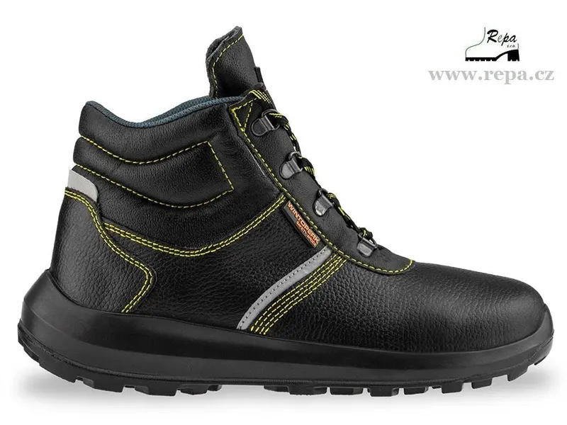 Základní černé pracovní boty na šněrování kůže. Vhodné pro pracovní prostředí, kde není potřeba ochranná hrot. Boty s protiskluzovými vlastnostmi SRC.