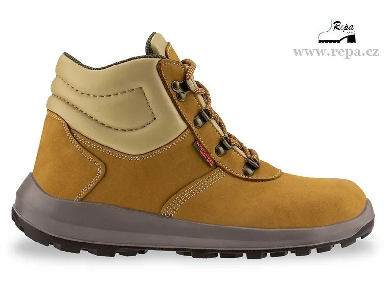 Vysoké pracovní boty s šněrováním v barvě písku vhodné pro pracovní prostředí, kde není potřeba bezpečnostní špička. Boty s protiskluzovými vlastnostmi SRC.
