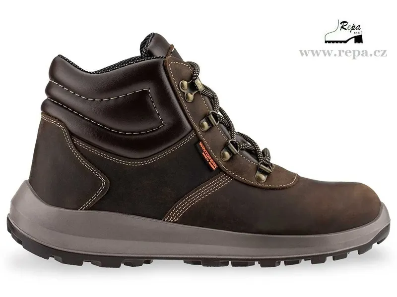 Vysoké zimní pracovní boty s hnědým šněrováním vhodné pro pracovní prostředí, kde není potřeba bezpečnostní špička. Boty s protiskluzovými vlastnostmi SRC.