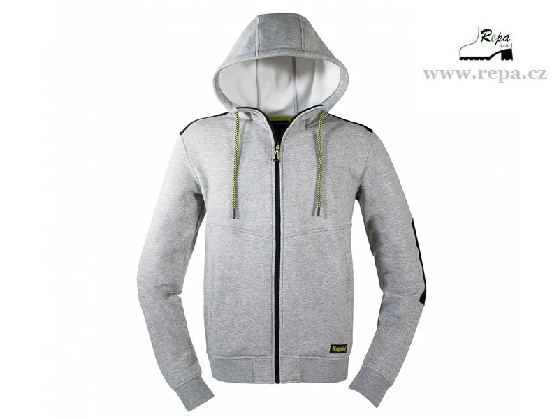 Mikina s kapucí z příjemného, hřejivého materiálu. Zapínání na zip, rukávy a spodní lem do elastické manžety a zesílená oblast ramen a loktů.