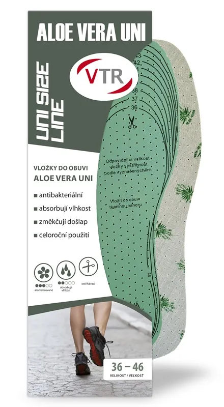 Užijte si pohodlnou a svěží chůzi po celý den s parfémovanými stříhacími vložkami Aloe Vera 36–46. Latex tlumí nárazy, perforace zajišťuje prodyšnost a Aloe Vera chrání obuv před bakteriemi – vaše nohy zůstanou svěží a komfortní!