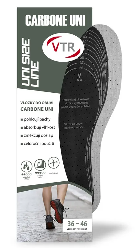 Dopřejte svým nohám maximální pohodlí, hygienu a svěžest s univerzálními ostřihávacími vložkami Carbone UNI. Vložky jsou vyrobeny z kvalitního perforovaného šlehaného latexu (latexové pěny) s obsahem aktivního uhlí, které účinně pohlcuje a neutralizuje nepříjemné pachy v obuvi. Povrch tvoří měkká a prodyšná směs bavlny a viskózy, která udržuje nohy suché a svěží po celý den.